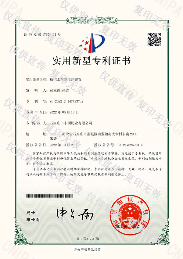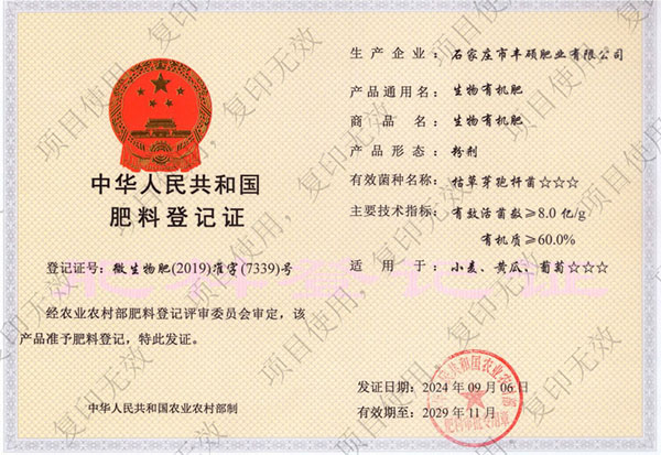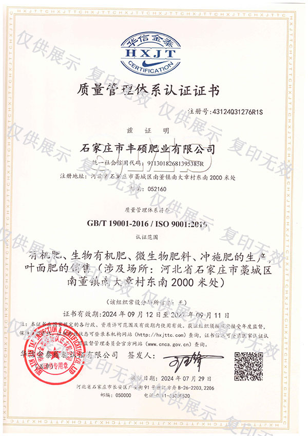 +更多石家莊市豐碩肥業(yè)有限公司是一家集新型肥料的研發(fā)、制造、營(yíng)銷(xiāo)、服務(wù)于一體的高新技術(shù)企業(yè),公司自2008年創(chuàng)辦以來(lái),一直致力于新型肥料的技術(shù)研發(fā)和市場(chǎng)推廣。公司組建了豐碩新型肥料研究中心(院士專(zhuān)家企業(yè)工作站),自主知識(shí)產(chǎn)權(quán)研發(fā)團(tuán)隊(duì)專(zhuān)業(yè)科研人員20余人,獲得了多項(xiàng)肥料國(guó)家發(fā)明專(zhuān)利。公司目前已擁有發(fā)酵類(lèi)有機(jī)肥、微生物菌劑、生物有機(jī)肥、土壤調(diào)理劑、大量元素水溶肥、含腐植酸肥料、含氨基酸肥料、中微量元素肥料等8大品類(lèi),“金維克”、“豐碩沃農(nóng)”等2大自有品牌,擁有20多個(gè)暢銷(xiāo)品種。目前,我公司已經(jīng)通過(guò)了“ISO9001 質(zhì)量管理體系認(rèn)證”、“ISO14001 環(huán)境管理體系認(rèn)證”、“OHSAS18001 職業(yè)健康管理體系認(rèn)證”。...